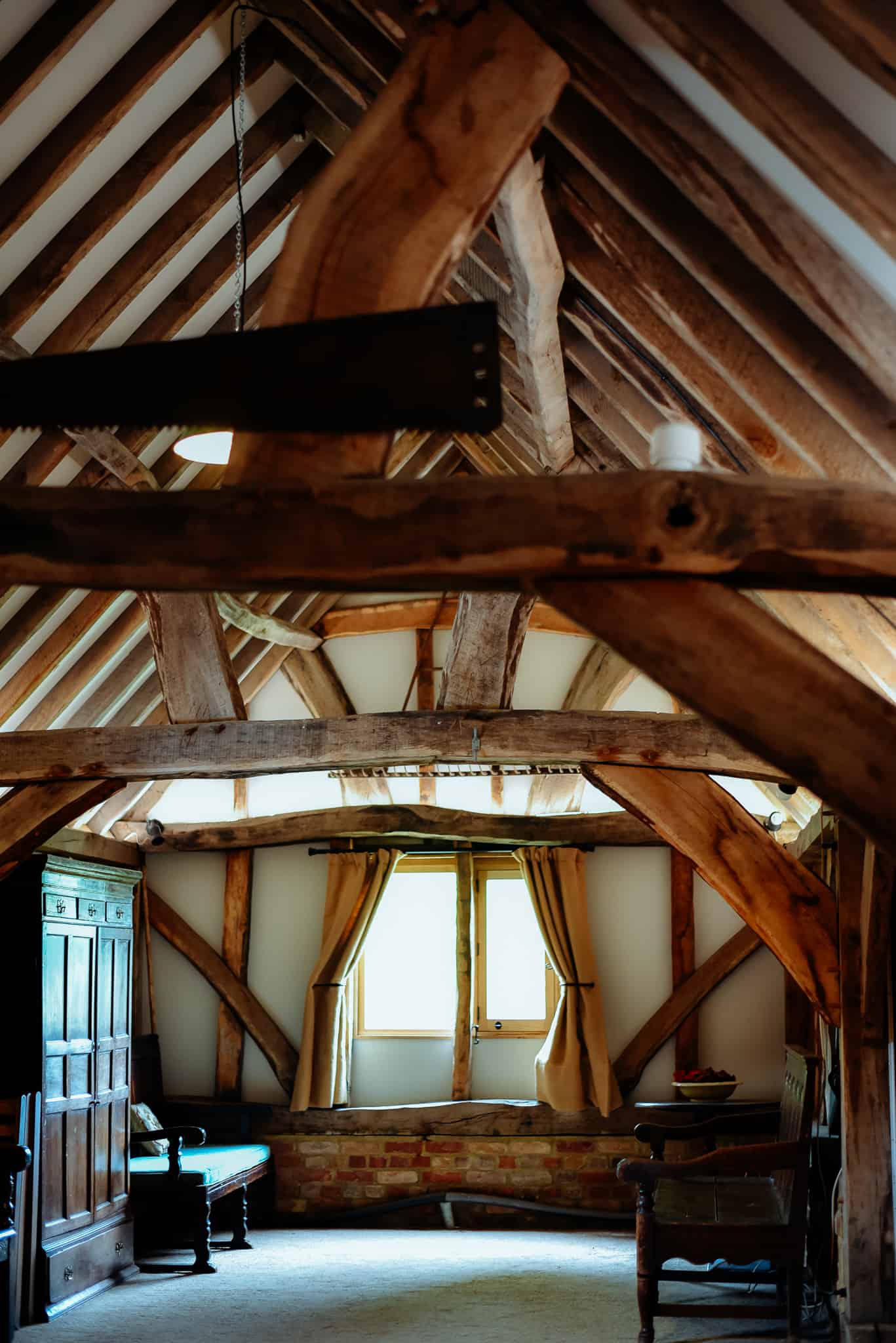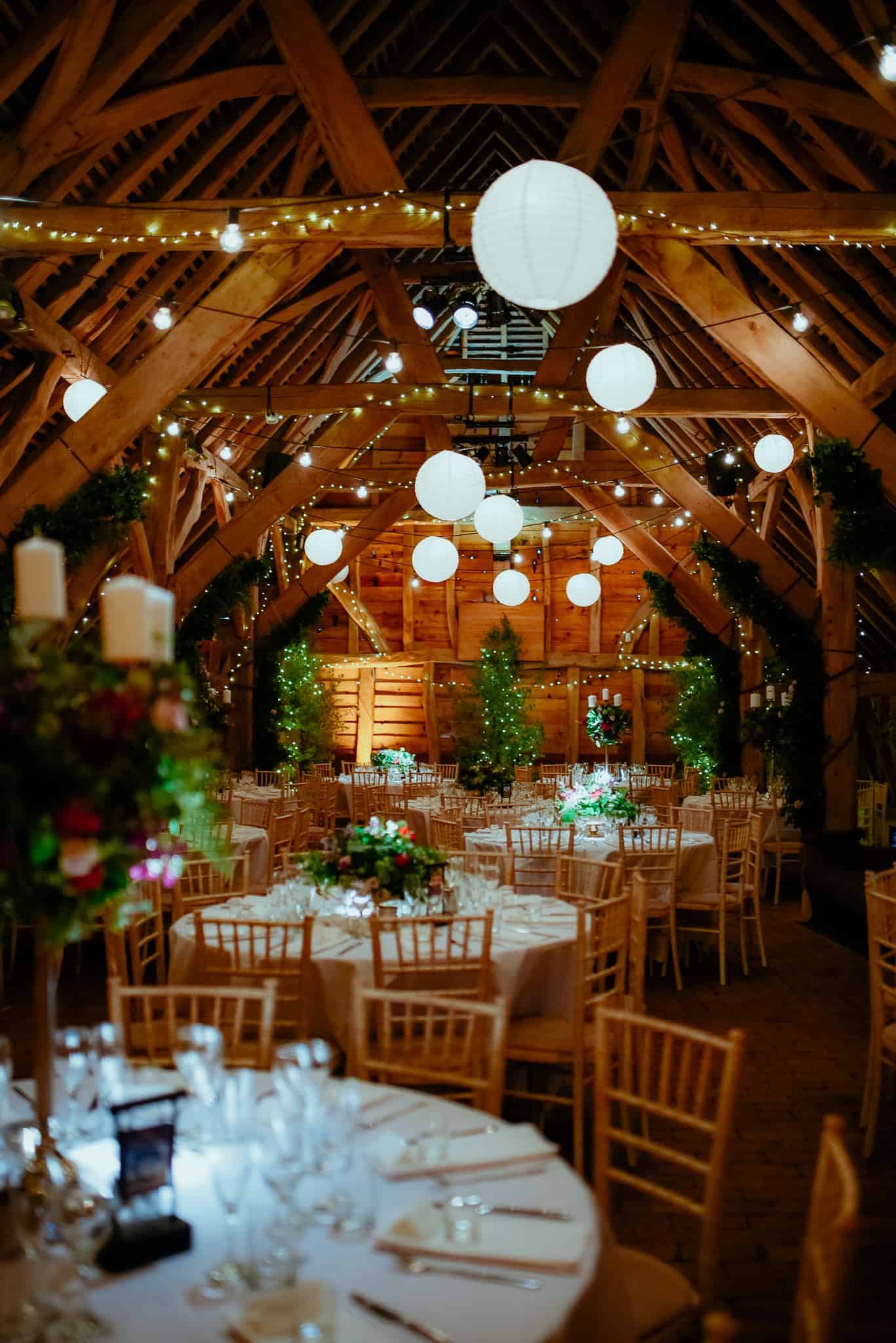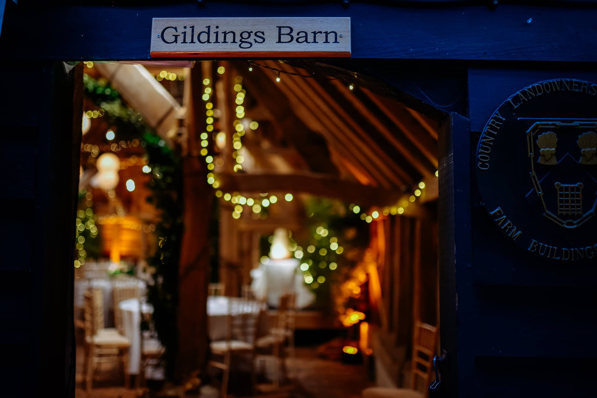Gildings Barns in Surrey is a beautiful wedding venue tucked away just south of Dorking in Newdigate. Set in the stunning Surrey countryside, surrounded by gorgeous, ancient woodland and open fields. The site consists of 3 connecting barns which are attractively arranged, creating a perfect setting for both indoor and outdoor celebrations. The old barn doesn’t shy away from its heritage. It has been constructed using oak timber from a devastating storm in the early 1980s. Transformed from a traditional hay storing area for dairy herds into a beautiful venue. It’s high ceilings, oak beam struts, panelling and stone floors evoke a natural countryside ambience. Dotted around the venue you will see vintage agricultural tools from its original use, offering a rustic beauty to this charming venue. This romantic Surrey wedding venue is perfect for a traditional English countryside wedding.