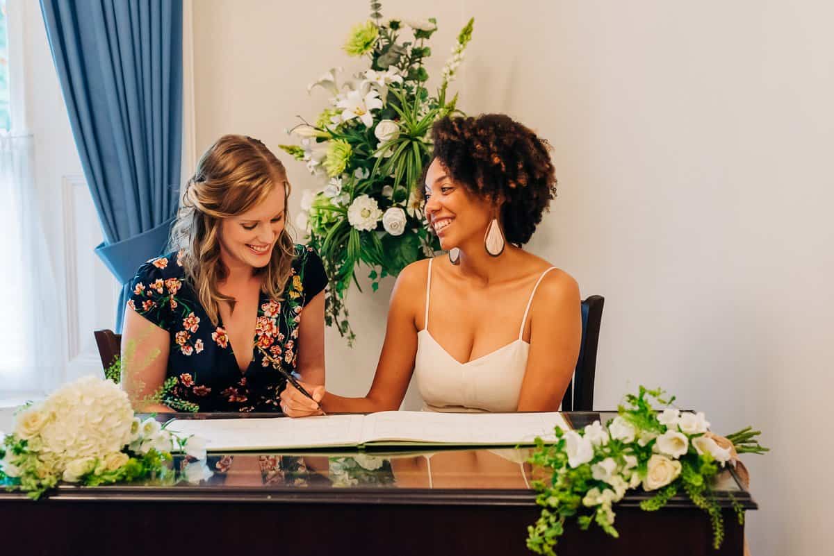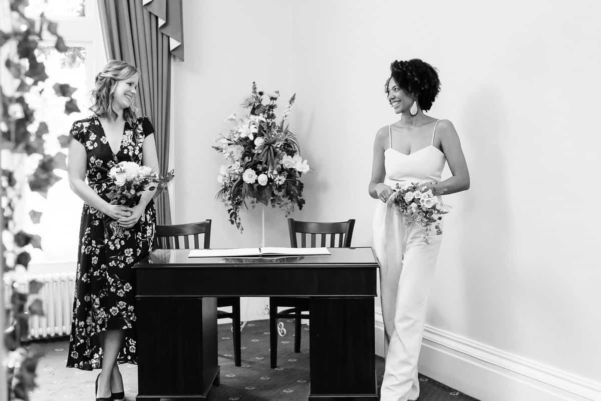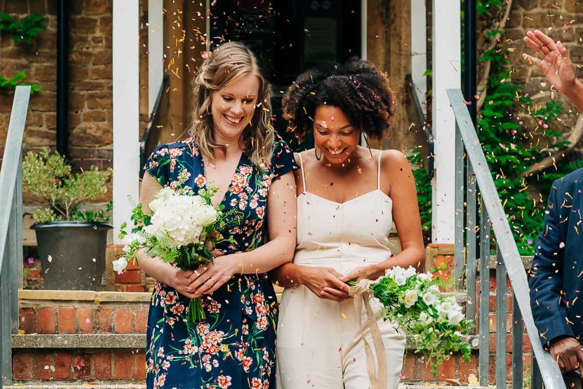 This August Laura and Emily tied the knot in an intimate lockdown wedding. They were allowed 6 guests in their ceremony in Guildford’s Artington House registry office. Although the numbers were small and it looked a lot different to normal, it was no less wonderful and special. Laura & Emily had their closest friends and family attend the ceremony, and then a few other guests join them at their home for drinks and nibbles. This wedding is a prime example of how COVID can steal a lot of things, but it can never take away love! I love that Laura and Emily didn’t even let a global pandemic stop their wedding fro m happening!