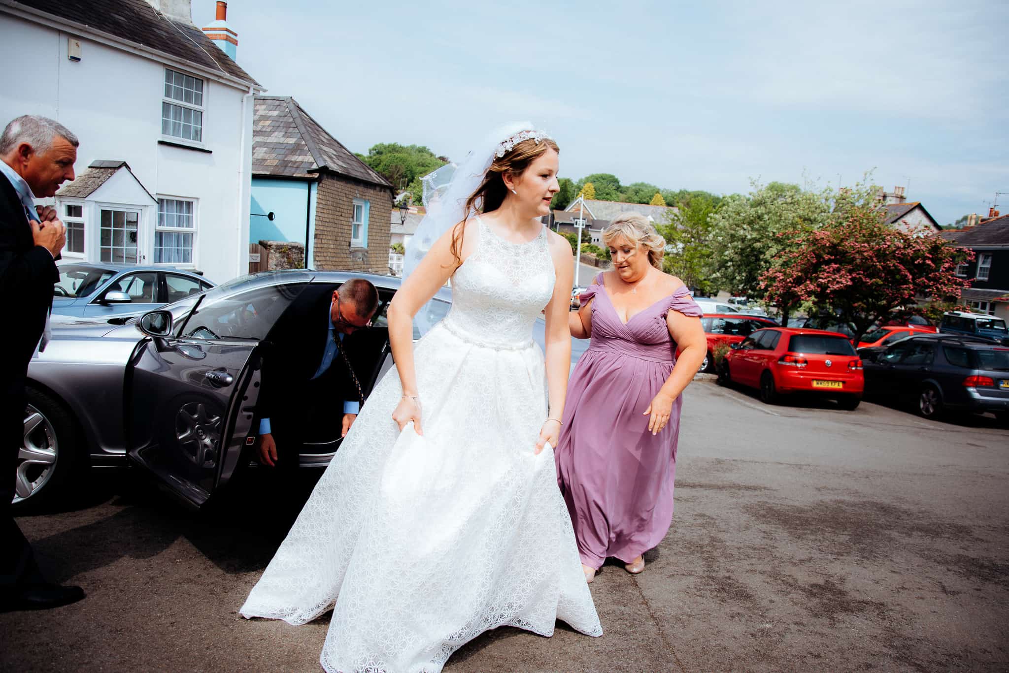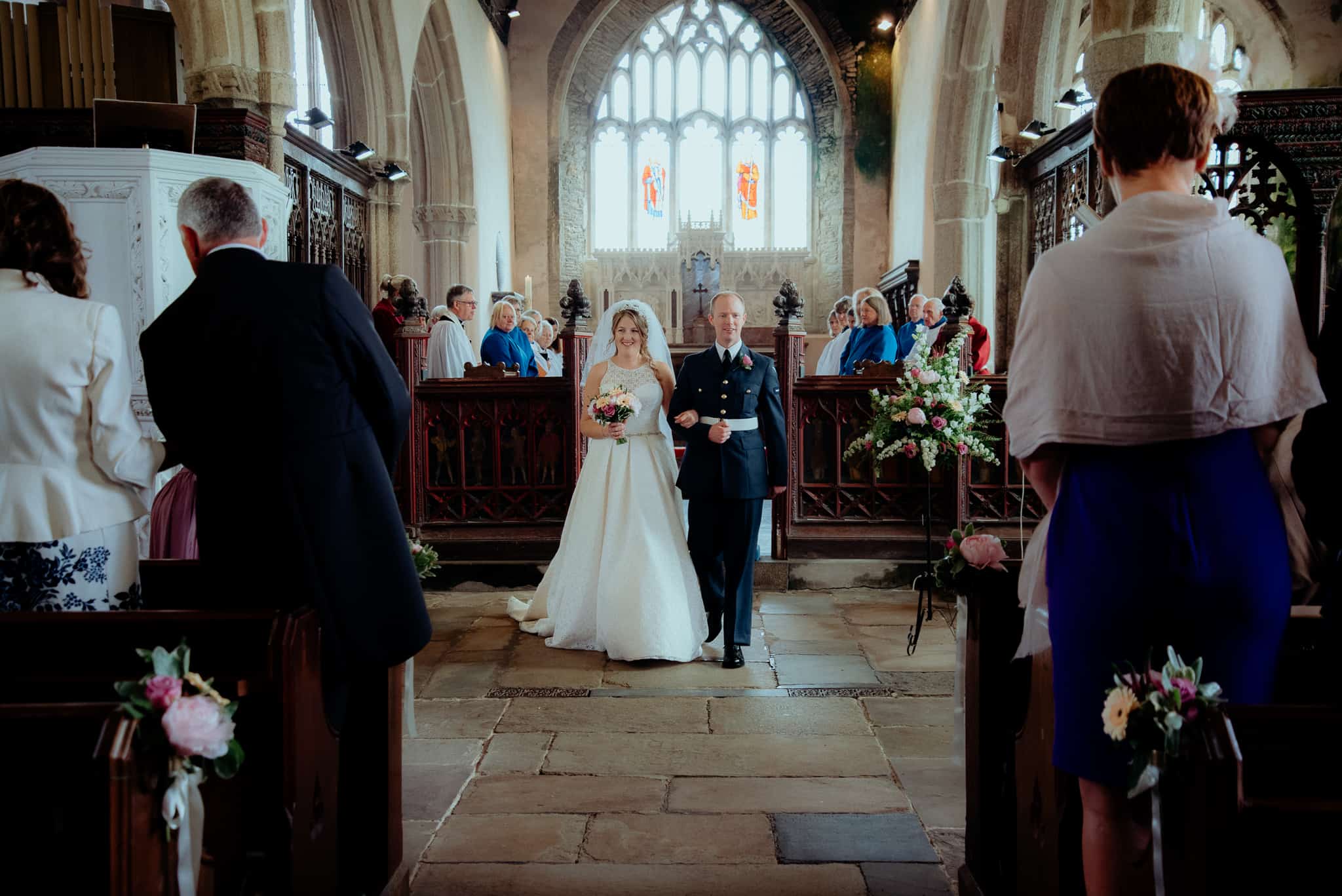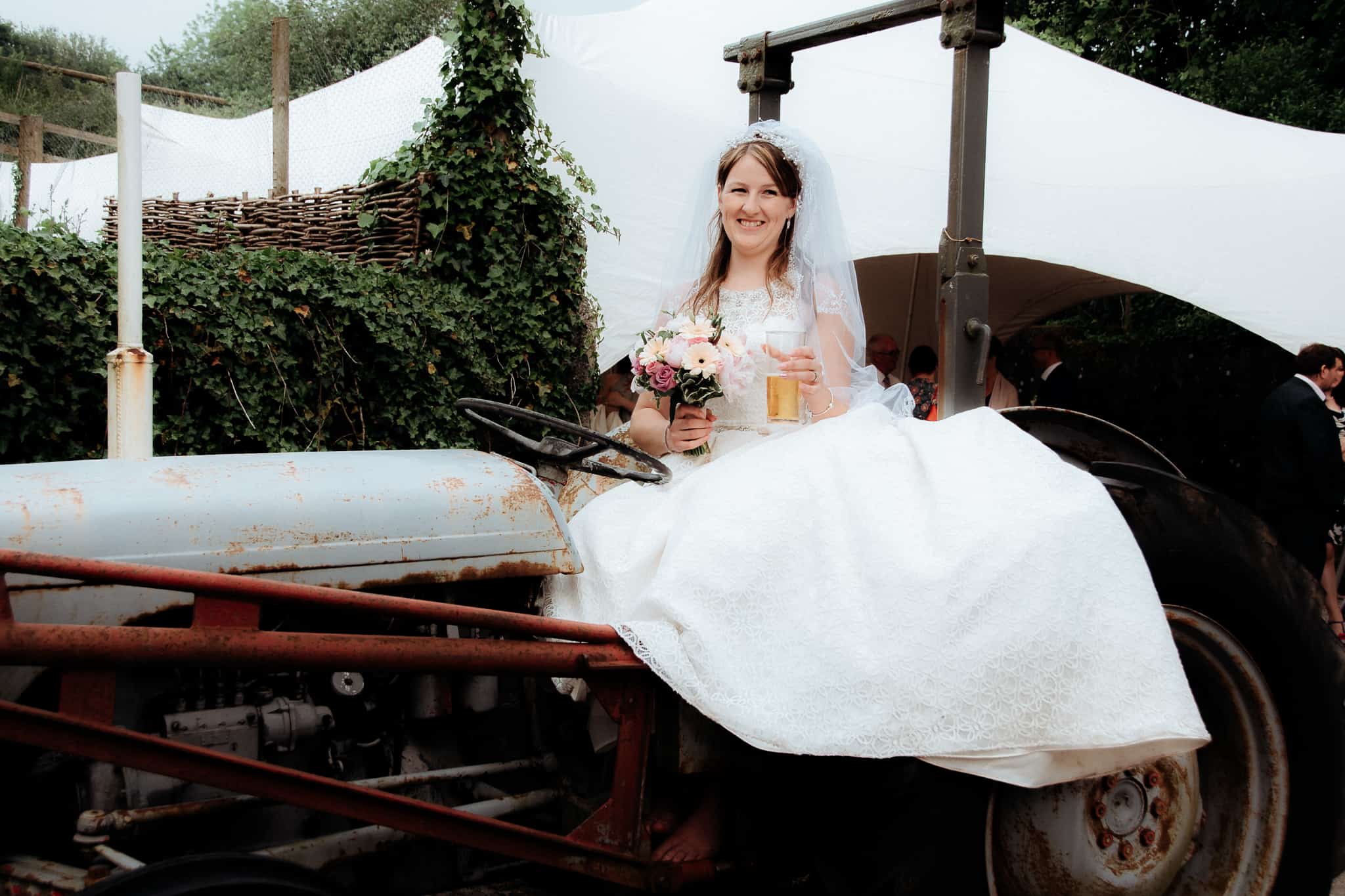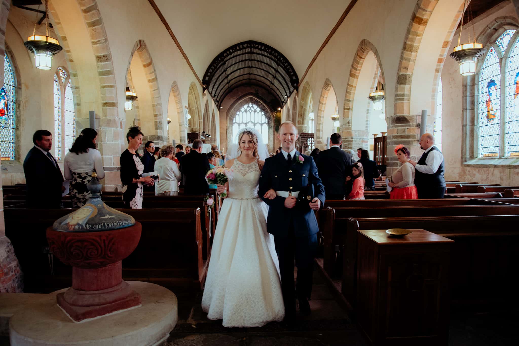 The ceremony was held at the beautifully picturesque St Peters Church in Ugborough, which Hannah Burnett had decorated with soft pink and white flowers. Lizzie looked stunning walking down the aisle in her Benjamin Roberts wedding dress. The brides brother surprised the bride and groom by tying beer cans on to the back of the mini that they had borrowed as their wedding car. So when they drove away the sound of ‘just married’ filled the air.