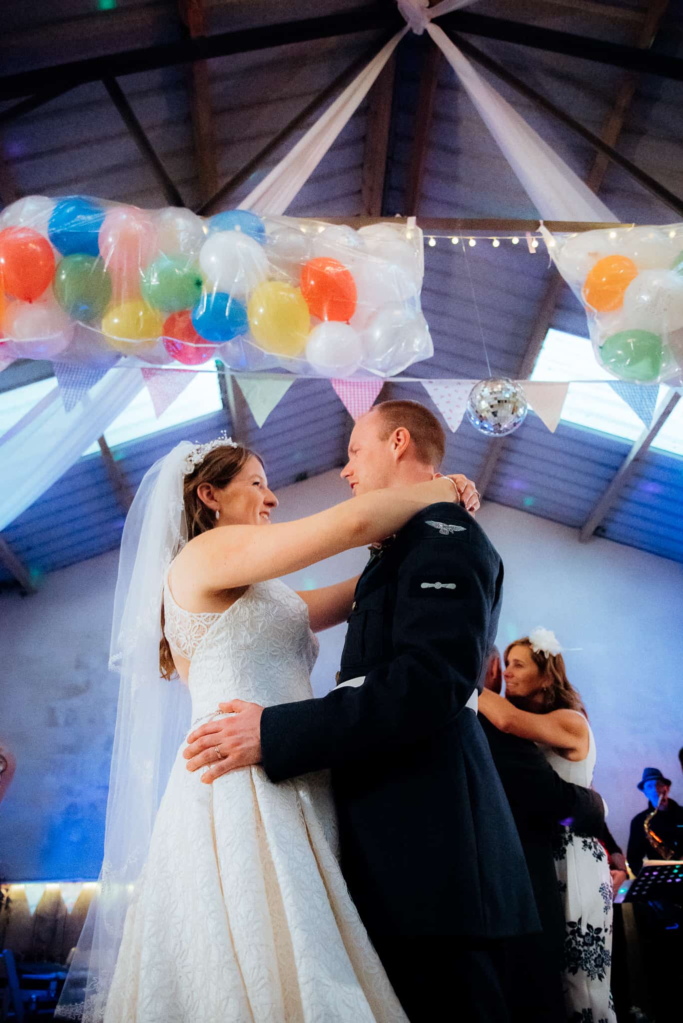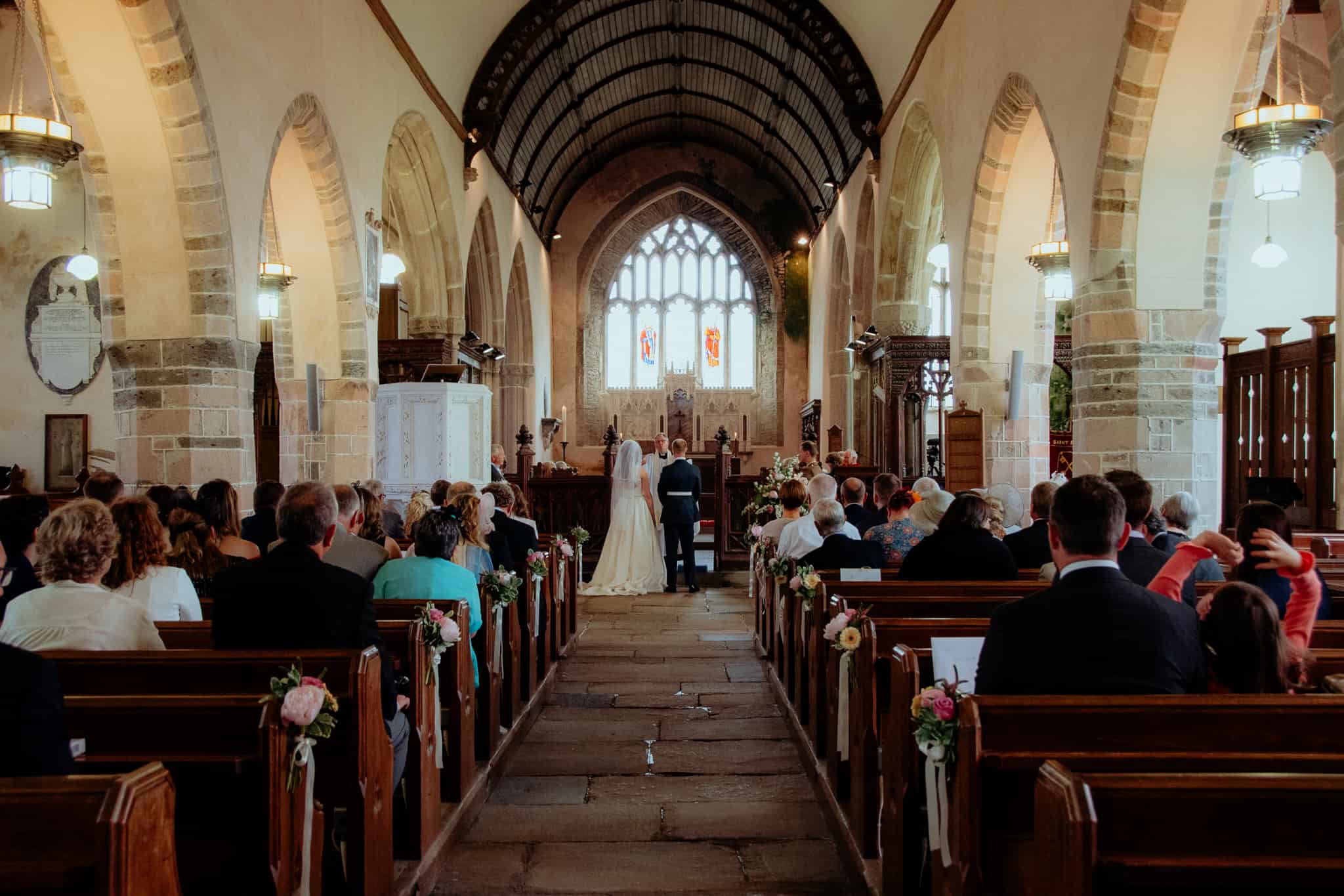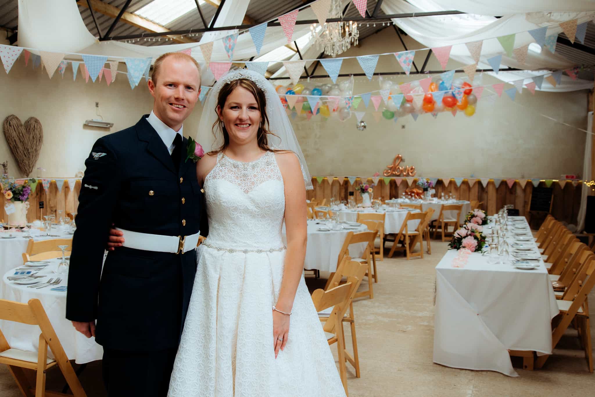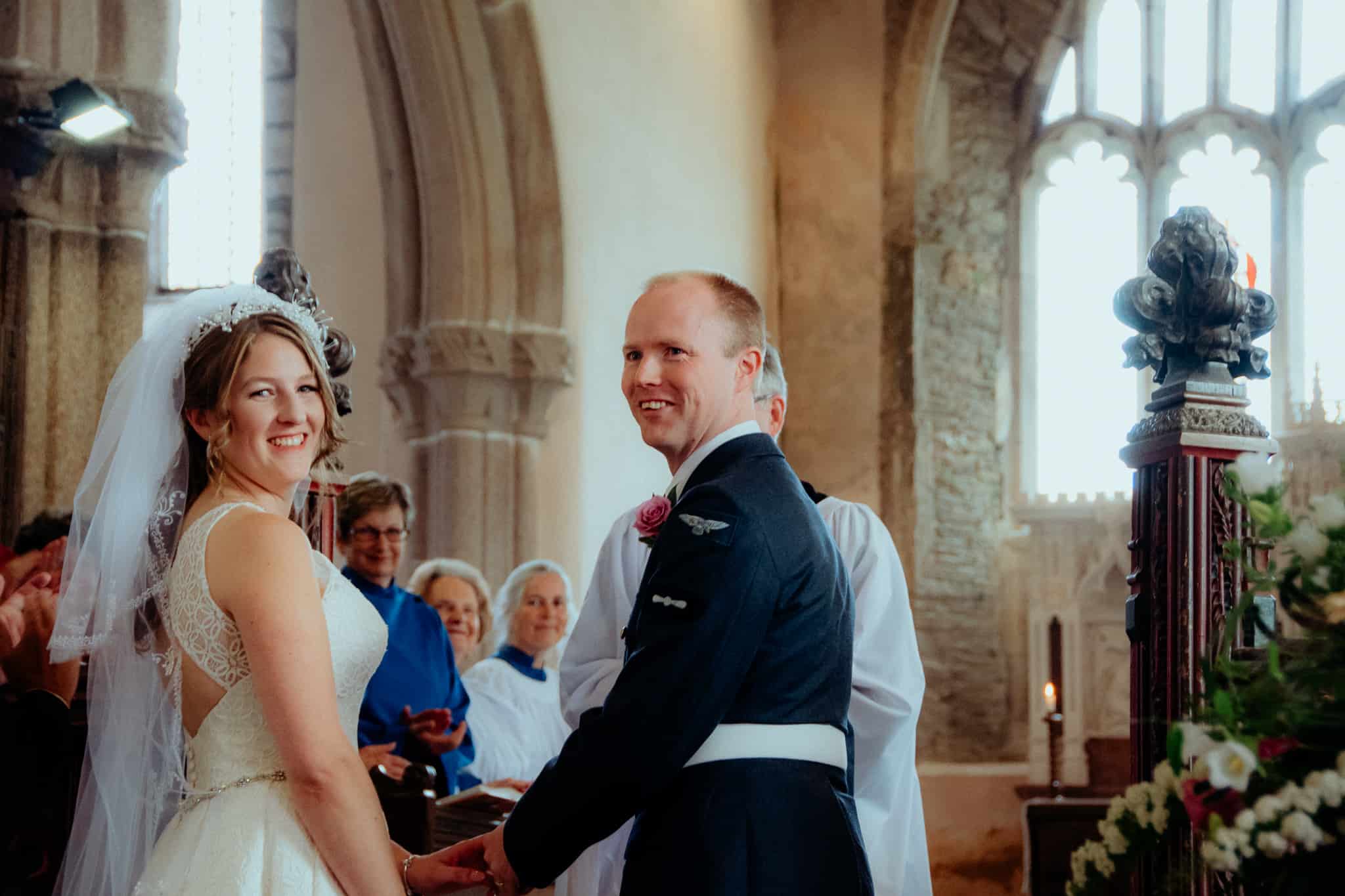 The ceremony was held at the beautifully picturesque St Peters Church in Ugborough, which Hannah Burnett had decorated with soft pink and white flowers. Lizzie looked stunning walking down the aisle in her Benjamin Roberts wedding dress. The brides brother surprised the bride and groom by tying beer cans on to the back of the mini that they had borrowed as their wedding car. So when they drove away the sound of ‘just married’ filled the air.